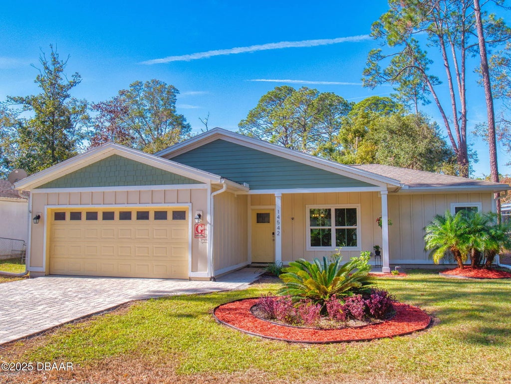 Welcome to this stunning 3 bed/ 2 bath home, built in 2019, perfectly situated on just over a quarter-acre lot. This move-in ready home combines modern comfort with timeless charm. The bright open floor plan is ideal for entertaining and/or creating cherished family memories. The spacious living room flows effortlessly into the dining room and modern kitchen. The kitchen is a chef's delight, featuring sleek stainless-steel appliances, luxurious granite countertops and ample cabinetry for all your storage needs. Just off of the kitchen, you'll find a convenient indoor laundry room with additional storage space. The primary suite is a private retreat, complete with a large walk-in closet and a beautifully designed ensuite bathroom. Relax and unwind in the tiled walk-in shower or enjoy the convenience of dual sink vanities. The two additional bedrooms are equally inviting, offering generous closet space and plenty of natural light. A second full bathroom is thoughtfully positioned near the guest bedrooms. Step outside through elegant French doors and enter your backyard oasis. The expansive, brick-pavered patio and charming gazebo provide the perfect setting for outdoor gatherings or quiet evenings. The large, fully fenced yard offers endless possibilities, whether you envision a lush garden, a play area or room for pets to roam. Additional highlights include a spacious two-car garage at the end of a pavered driveway, a side yard with room for boat or trailer storage and an outdoor sink. The side yard is also equipped with a fully functional 240-volts EV plug for electric vehicles. A shed in the front houses the well and water softener, providing additional and practical storage solutions. Best of all, there are no HOA or CDD fees! Located near restaurants, shopping centers and the Jacksonville airport, this home offers both tranquility and convenience. Don't miss the opportunity to make this beautiful property your own. Call today to schedule a private showing.