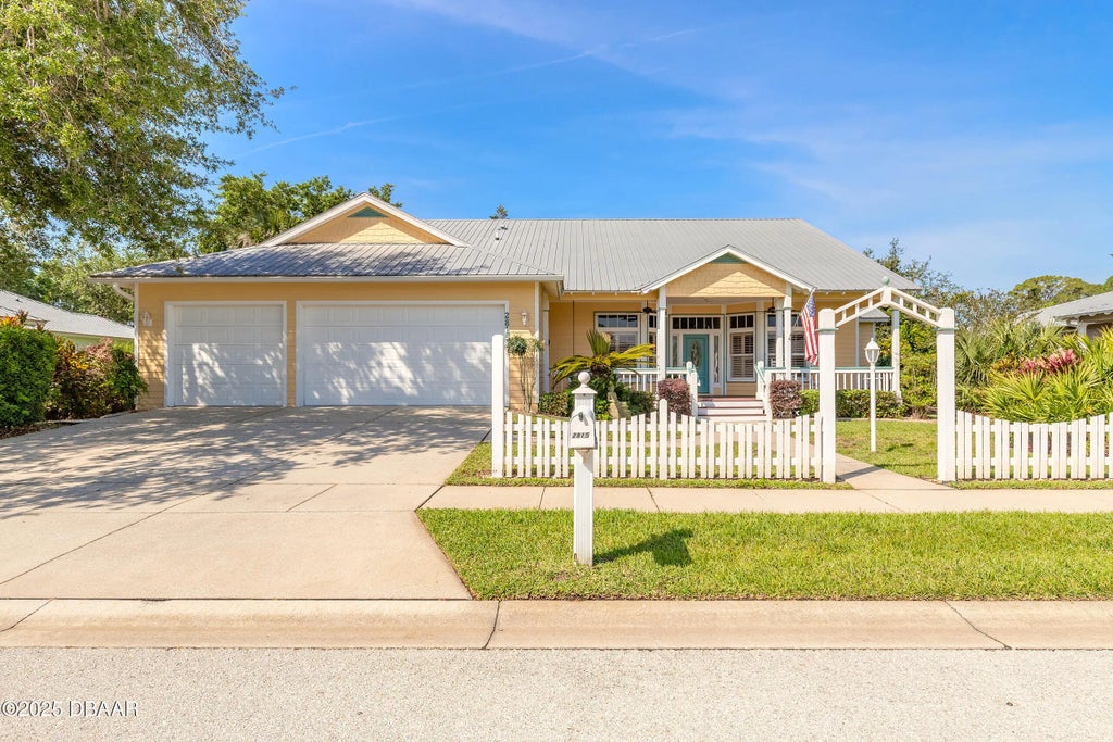 Located in the gated Osprey Cove community, within Turnbull Bay Golf Club, this charming Hickson Construction home offers 3 bedrooms, 2 baths, and a private screened heated pool. Built for lasting beauty, it features Hardie Board siding, a durable metal roof, hardwood floors, and a welcoming front porch with a classic swing. The open kitchen connects seamlessly to both the dining area and a cozy breakfast nook overlooking the pool, perfect for entertaining or everyday living. A flexible bonus room can serve as an office, den, or extra bedroom. The spacious primary suite enjoys a spa-like bath with dual vanities, a soaking tub, and glass-enclosed shower. Outdoor living shines with lush landscaping, a pavered patio, and ample shaded decking around the pool. Additional highlights include an oversized 3-car garage, irrigation system, and exterior lighting. Just minutes to New Smyrna Beach's famous white sands, shops, dining, and year-round festivals this is coastal living at its finest. All information is intended to be accurate, however not guaranteed.