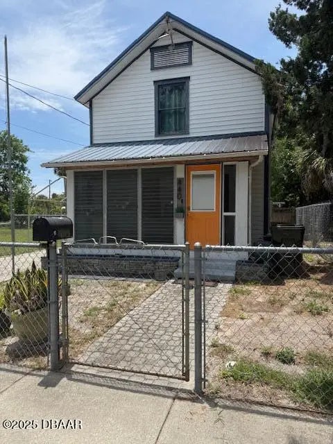 **Investor Alert - Ideal Rental Opportunity!** This exceptionally clean home sits on an oversized, fully fenced lot, perfect for pet lovers and those who value space. The property features a detached two-car garage and has seen thoughtful upgrades, including modernized bathrooms—one conveniently located downstairs and a main bath upstairs alongside two spacious bedrooms. Enjoy peace and privacy with a vacant lot next door and quiet neighbors. Located just minutes from major attractions, you're only 5 minutes from the **World's Most Famous Beach** and the **Daytona International Speedway**. Walk to the beautiful **Halifax River** and enjoy nearby shopping, dining, hospitals, and more. Plus, you're just an hour away from both **Disney World** and **historic St. Augustine**. Whether you're a savvy investor or a first-time buyer looking for value and location, this property delivers! Washer and Dryer stays in this indoor laundry room too.