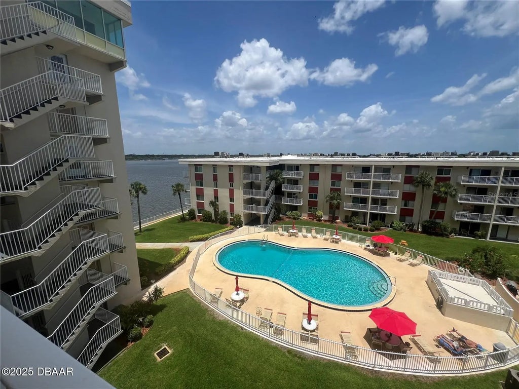 HERE'S YOUR CHANCE TO RENT ON THE WATER!! Welcome to this lovely 2 bedroom, 2 bathroom 5th floor condo with views of the swimming pool & intracoastal, including DOLPHINS & MANATEES, right from your OWN PRIVATE BALCONY! Included is water, cable & wifi/internet! There is a elevator to to your floor, as well as stairs! Enjoy your own assigned parking space, 3 swimming pools (2 are heated!), shuffleboard, a community room & 2 large fishing docks and a large Landscaped Courtyard with Picnic & BBQ areas! This Condo at the Riverside, Located on the Halifax River, is only a 1/2 mile walk to the Atlantic Ocean! It's minutes away from Tomoka State Park! There is a Large Community Room w/ a Full Kitchen & a Billiards table! Pay Laundry Room on Site. FIRST MONTH & SECURITY REQUIRED. *No pets, per association.* *NO SMOKING IN THE UNIT.* ALL MEASUREMENTS ARE APPROXIMATE. ALL INFORMATION IS DEEMED TO BE TRUE, BUT THE RENTER MUST VALIDATE FOR THEIR OWN INFORMATION** Schedule your showing!
