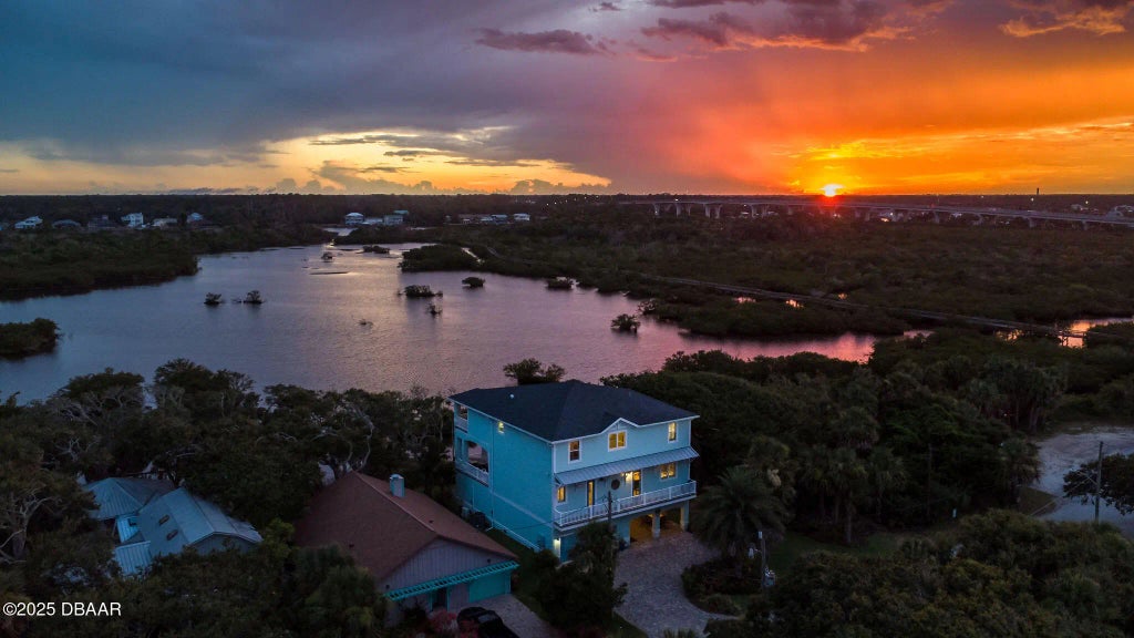 Welcome To Your Custom Built Waterfront Dream Home in desirable Flagler Beach! This stunning coastal sanctuary offers 4bedrooms 4bathrooms and sits on the Intracoastal in beautiful Flagler Beach. Enjoy panoramic water views from every room in the house, whether you are sipping your morning coffee or watching the sunset over the Intracoastal. Designed with both elegance and comfort in mind, this home offers spacious living areas, a modern open kitchen w/ island, and expansive covered outdoor spaces perfect for entertaining or relaxing. This beautiful home boasts tile plank flooring throughout main living areas, electric fireplace in living room, an elevator shaft in place/roughed in for new owner, floating dock, and an oversized 32ft deep garage. This home is perfectly located for a beautiful sunset bike ride or golf cart ride (golf cart friendly community) to and from Flagler Beach pier, local shops, beach, and restaurants. You will find yourself embracing the Florida lifestyle with boating, fishing/Kayak right in your backyard, and the beach just 3 short blocks away. Looking for activities just steps away, this home is situated next to Wickline Park where you can play tennis, pickle ball, volleyball, basketball, and offers a friendly playground for kids. Come view this one-of-a-kind coastal home today before it is gone!