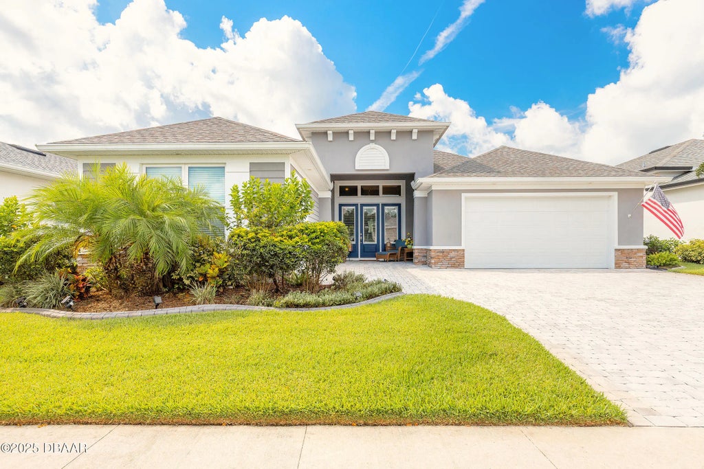 Experience spectacular lake views in this stunning 4-bedroom, 3-bath Johnson-built pool home, beautifully situated on one of the largest lakes in Venetian Bay. The welcoming coastal ambiance is enhanced by vinyl flooring throughout, soaring 12-foot ceilings, elegant crown molding, and charming plantation shutters. Natural light pours through a sun tunnel, illuminating the kitchen's stylish two-tone cabinetry in fresh white and rich espresso. The home's open-concept layout seamlessly connects the living, dining, and kitchen areas, all offering breathtaking lake vistas. The spacious kitchen features a generous center island, ample cabinetry, and premium stainless steel appliances, perfect for both entertaining and everyday functionality. Privacy is thoughtfully designed, with two bedrooms sharing a full bath in one wing, a separate bedroom suite with a soaking tub bath in another, and a serene primary suite located at the home's rear, complete with picturesque lake views and direct lanai access through glass sliders. Relax or entertain outdoors in the expansive screened lanai overlooking the solar-heated pool adorned by a vibrant, hand-painted mural capturing Florida's essence. The oversized two-car garage offers 4ft of extra depth and a premium floor coating complemented by an additional "toy garage" ideal for a golf cart, workshop, or extra storage. Meticulous landscaping bordered with decorative concrete curbing enhances the sophisticated curb appeal of this exceptional property. Truly a must-see! All information is intended to be accurate, however not guaranteed.